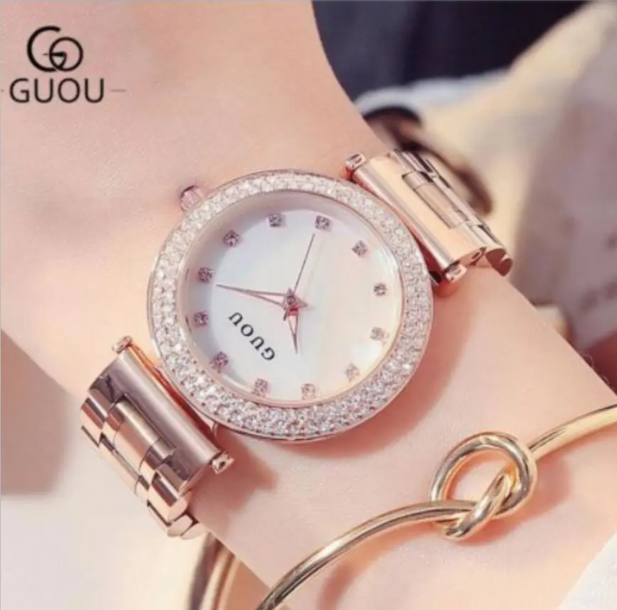 GUOU Fashion Ladies Watch For Women 2020 Shiny Diamond Reloj Mujer Luxury Bracelet Rose Gold Women'