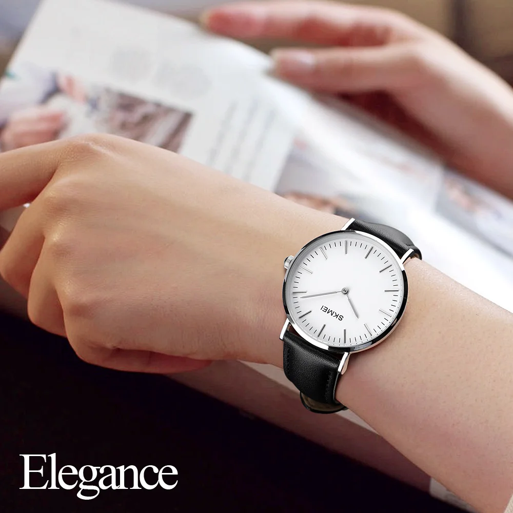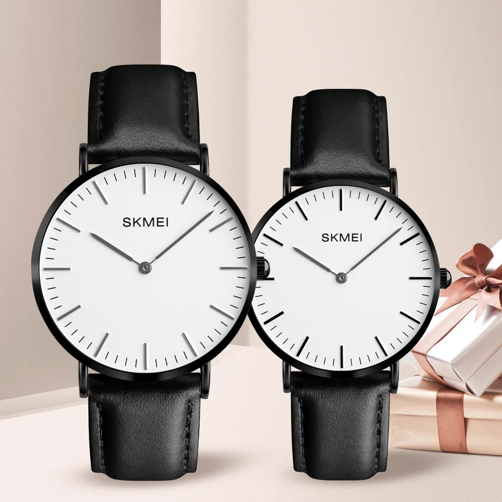 SKMEI Casual Black Women's Watch Leather Strap Simple Wristwatch Quartz Couple Watch Waterproof Lad
