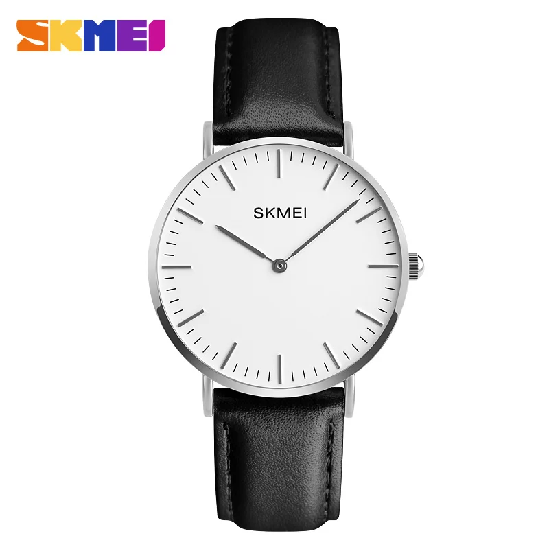BEST QUALITY SKMEI Casual Black Women's Watch Leather Strap Simple Wristwatch Quartz Couple Watch Waterproof Lad