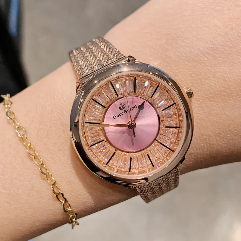 HOT Sale Dacr new popular fashion light luxury all Diamond Dial women's watch personality woven mesh belt wo