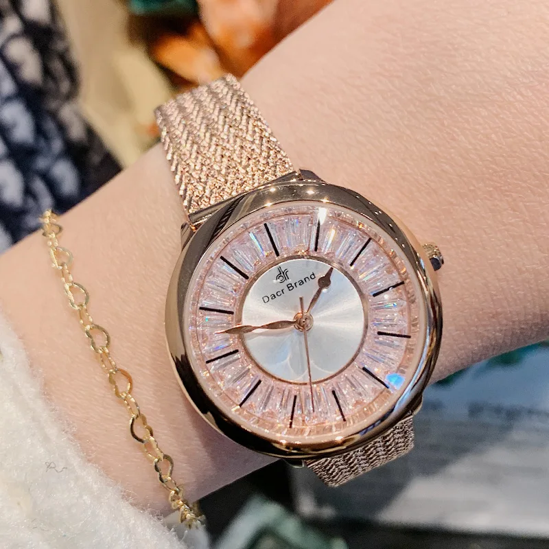 Dacr new popular fashion light luxury all Diamond Dial women's watch personality woven mesh belt wo