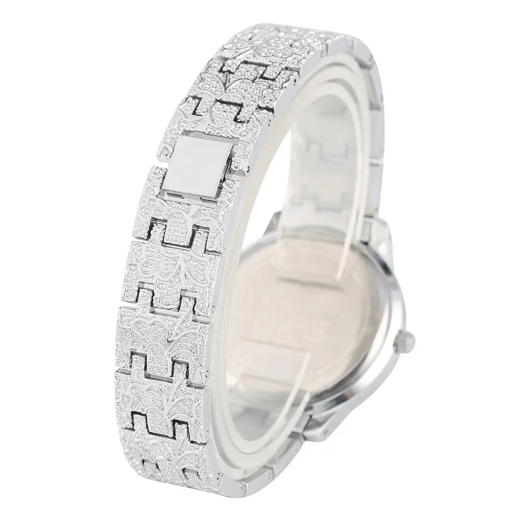 Women's Quartz Watch Luxurious Diamond-encrusted Alloy Skeleton Watch Unique Flower Pattern with Di