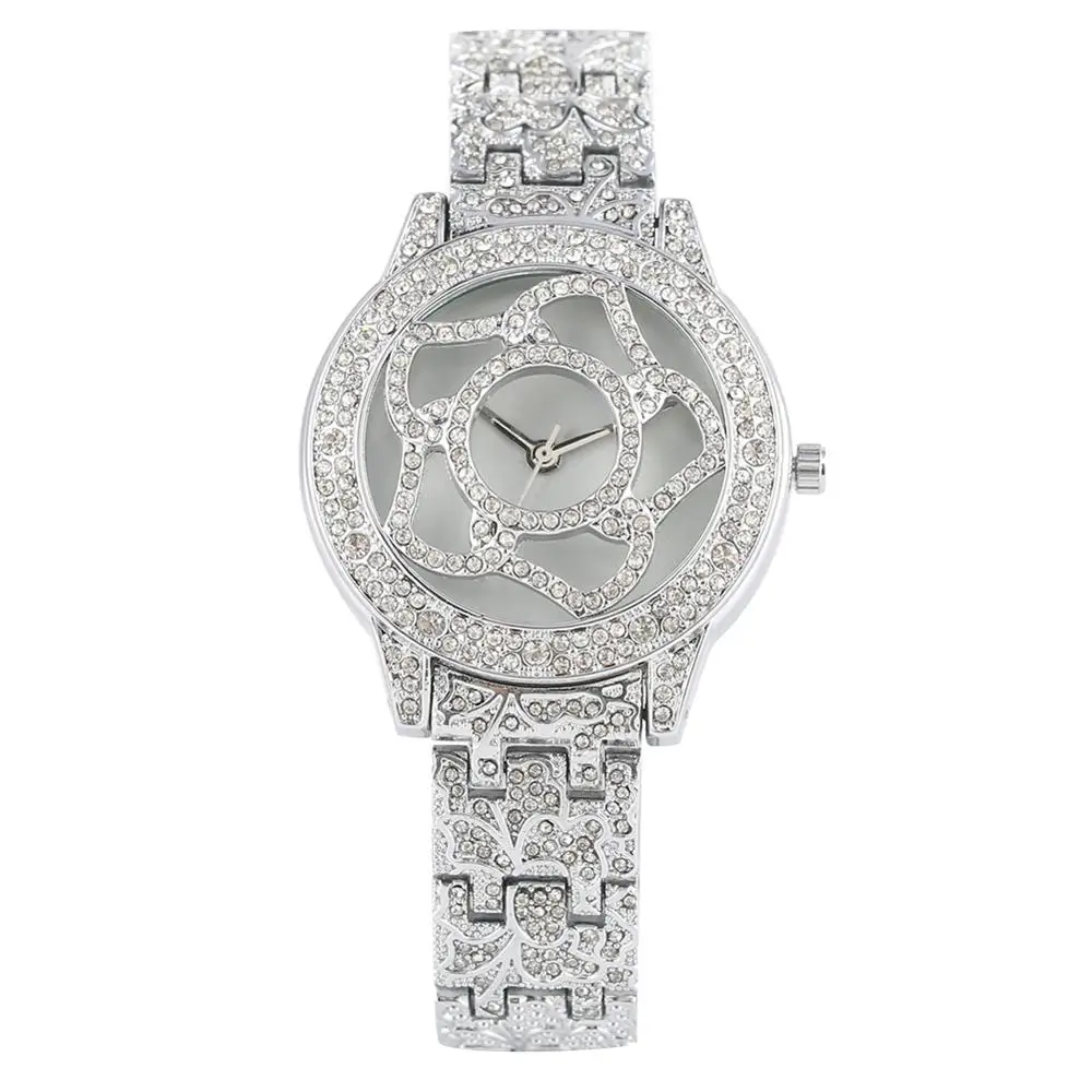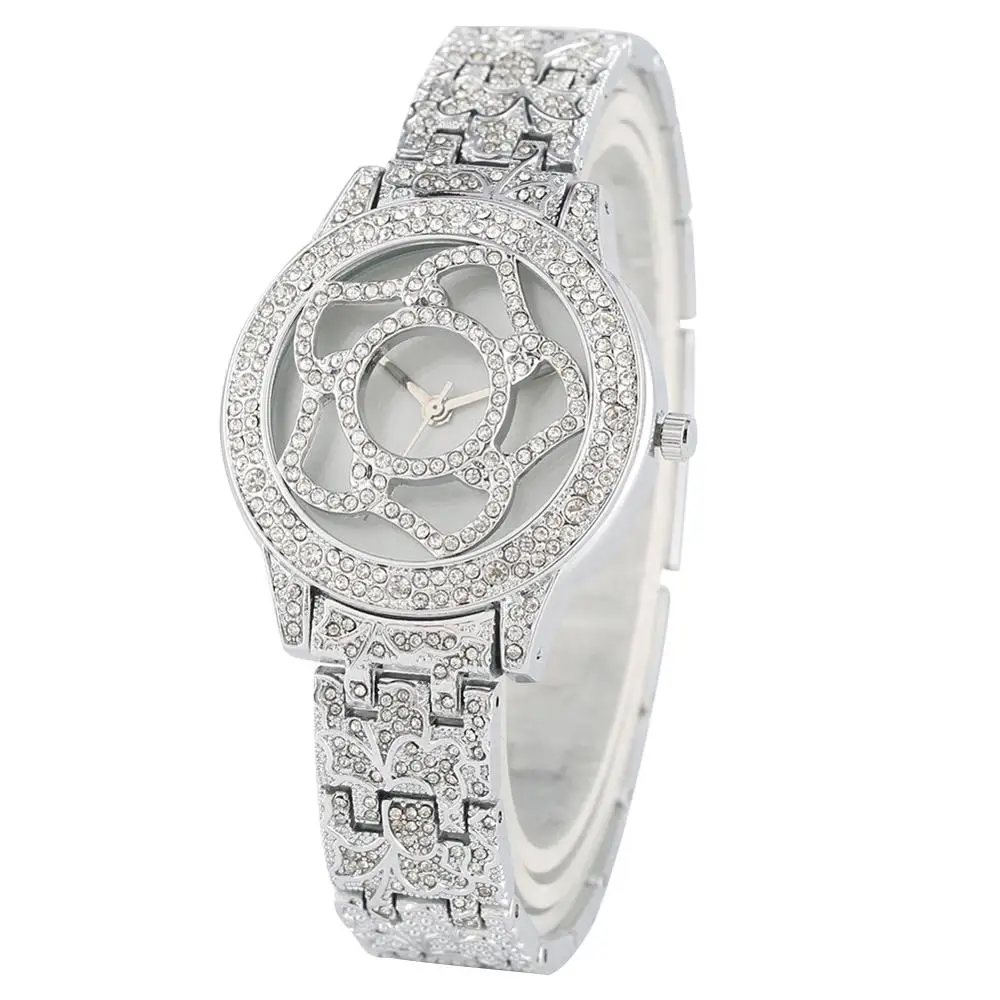 HOT Sale Women's Quartz Watch Luxurious Diamond-encrusted Alloy Skeleton Watch Unique Flower Pattern with Di
