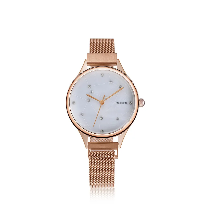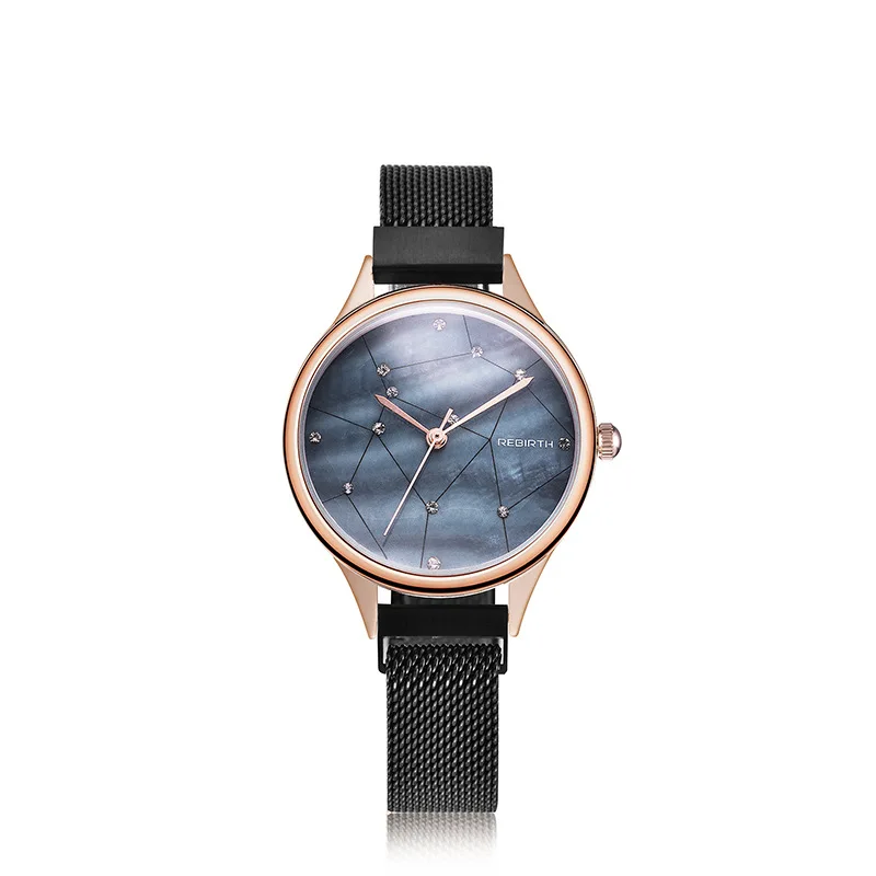 New Women Quartz Watch Round Diamond Shell Surface Waterproof Stainless Steel Mesh Band Magnetic Wa