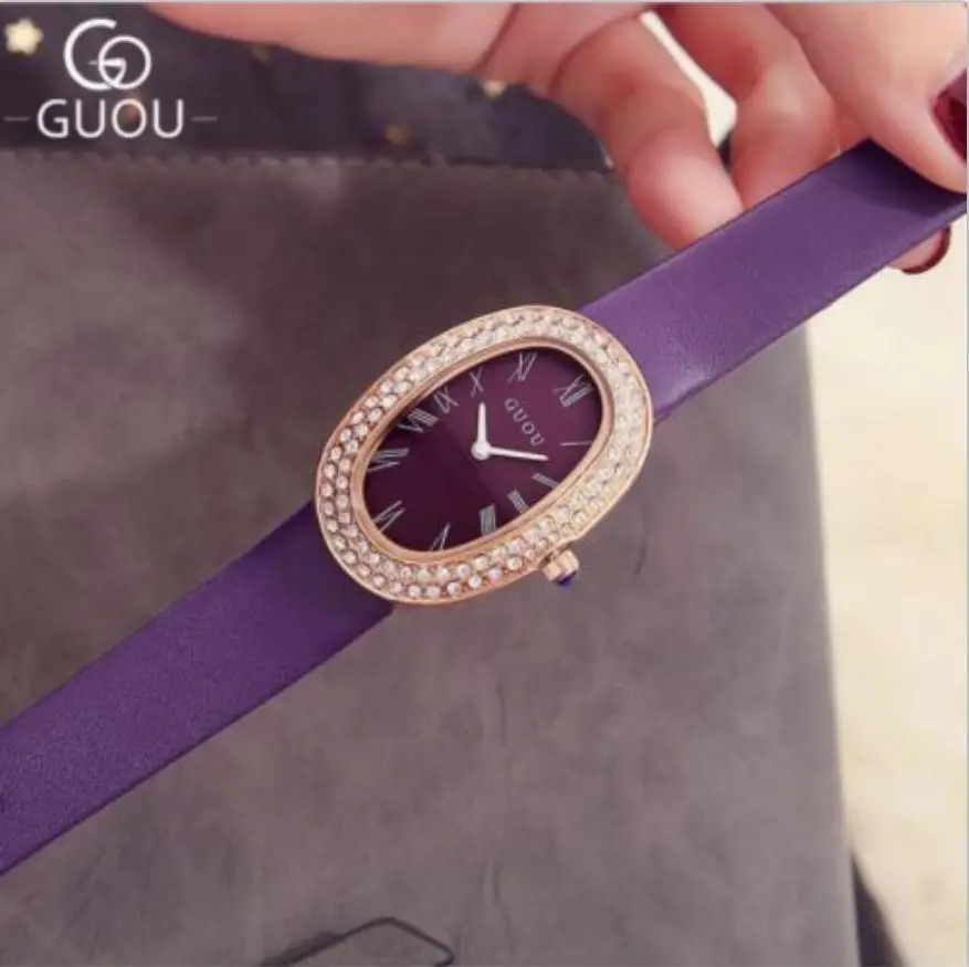 GUOU Fashion Diamond Women's Watches Waterproof Ladies Watch Women Watches Leather Wristwatch Water