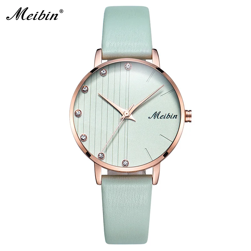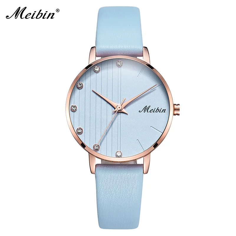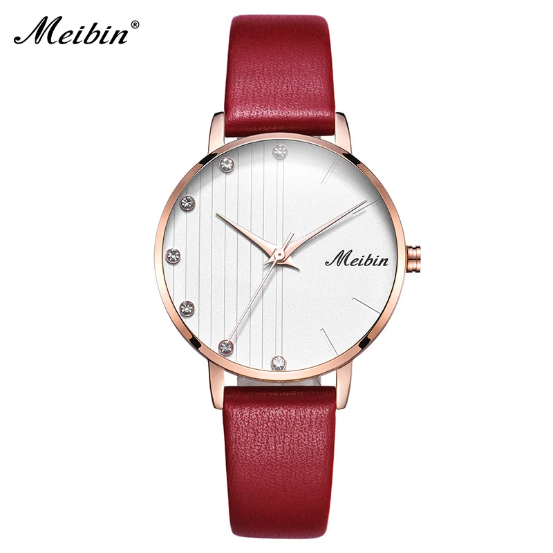 HIGH QUALITY MEIBIN Women's Watches Leather Luxury zegarek damski Diamond Brand Ladies Watch Personality Wrist W