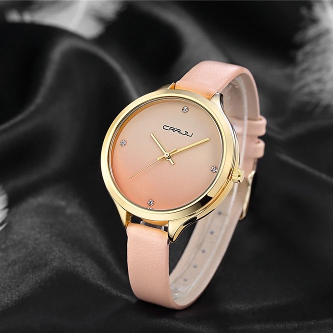 Hot Sale CRRJU Women's Watch Fashion Luxury Rhinestone Leather Waterproof Casual Dress Women Ladies Watch Re
